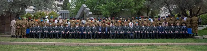 Foto del presidente del Estado, Isaac Herzog, el ministro de Defensa, Israel Katz, y el jefe del Estado Mayor, teniente general Aviv Kochavi, con los 120 galardonados presidenciales del año 5784. Crédito de la foto: Elad Malka. El orden de los asientos de derecha a izquierda es el siguiente: Asistente del jefe del Estado Mayor, coronel Alon Laniado; comandante de las Fuerzas Terrestres, general de división Nadav Lotan; comandante de los Colegios Militares, general de división Dan Neumann; fiscal militar general, general de división Itai Ofir; comandante del brazo aéreo y espacial, general de división Tomer Bar; comandante del Comando Sur, general de división Yaron Finkelman; comandante del Comando Central, general de división Avi Blot; jefe de la Dirección de Personal, general de división Dadi Afek; jefe de la Dirección de Planificación, general de división Hedi Zilberman; comandante del Comando del Frente Interior, general de división Shai Klepper; coordinador de Actividades Gubernamentales en los Territorios, general de división Yoram Levy; comandante del Cuerpo Norte y coordinador del Centro de Coordinación Civil-Militar para la Franja de Gaza, general de división Yaki Dolph. Jefe del Estado Mayor, teniente general Aviv Kochavi. Presidente del Estado, Isaac Herzog. Ministro de Defensa, Israel Katz. Jefe Adjunto del Estado Mayor, general de división Eyal Zamir. Jefe de la Dirección de Operaciones, general de división Itzik Cohen. Jefe de la Dirección de Servicios Informáticos y Defensa Cibernética, general de división Aviad Dagan. Jefe de la Dirección de Tecnología y Logística, general de división Rami Aboudram. Presidente de los Tribunales Militares, general de división Orly Markman.